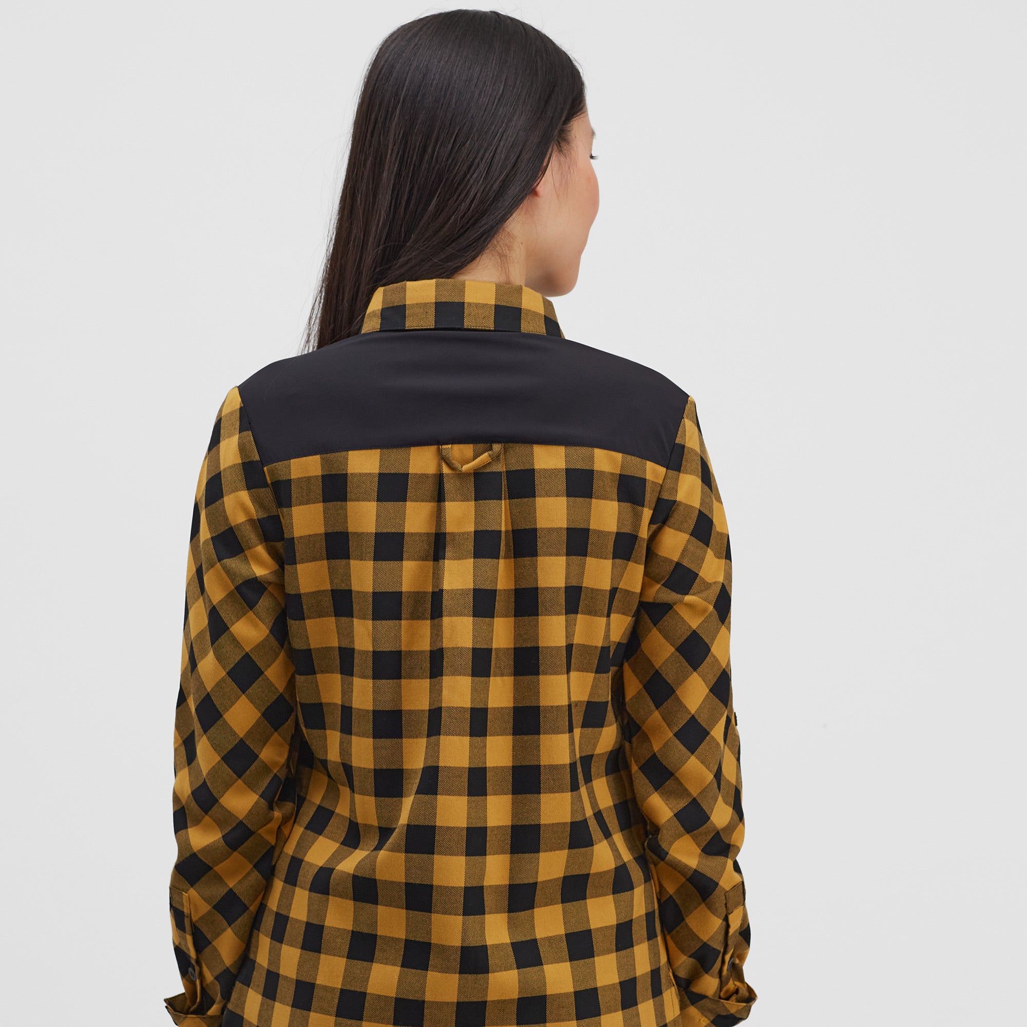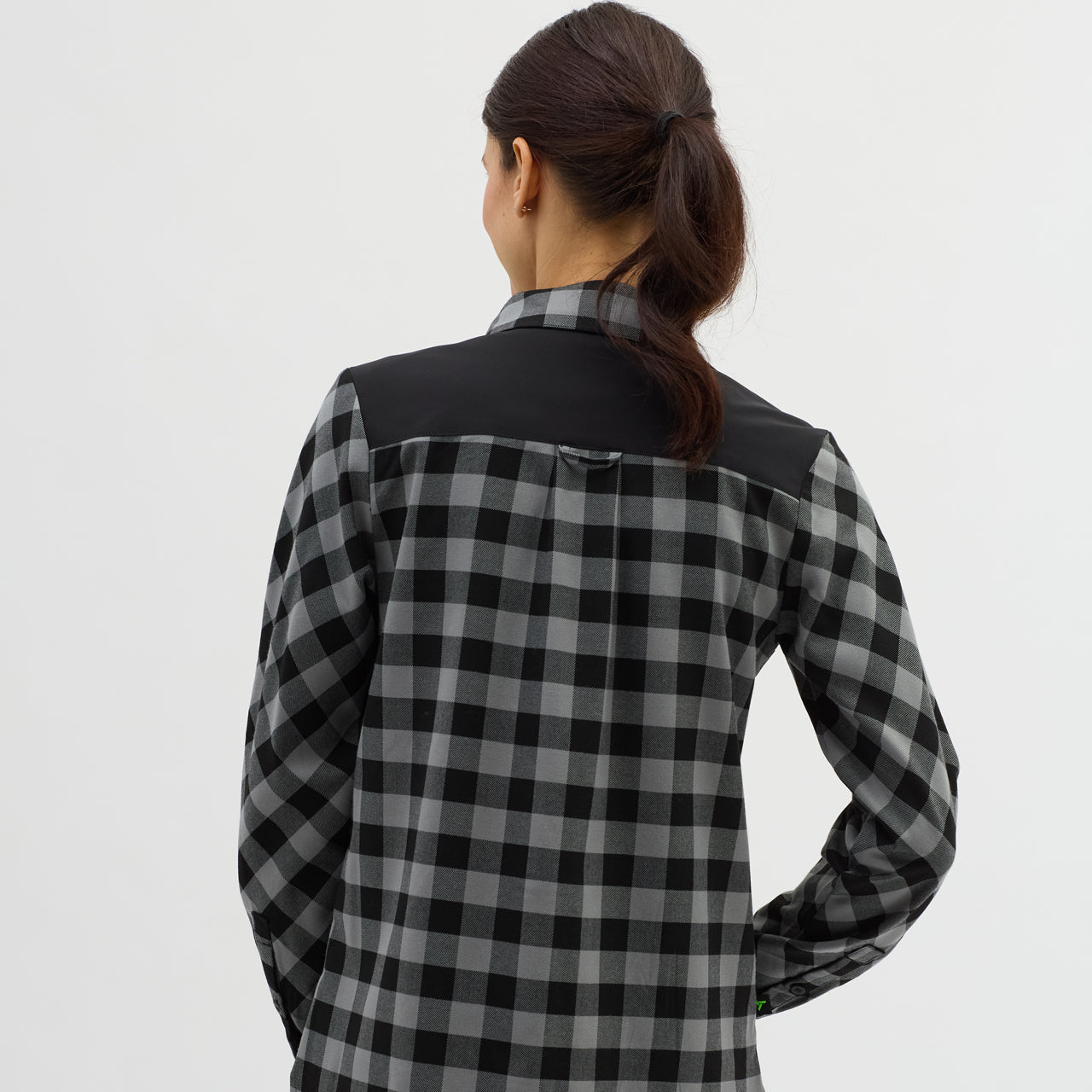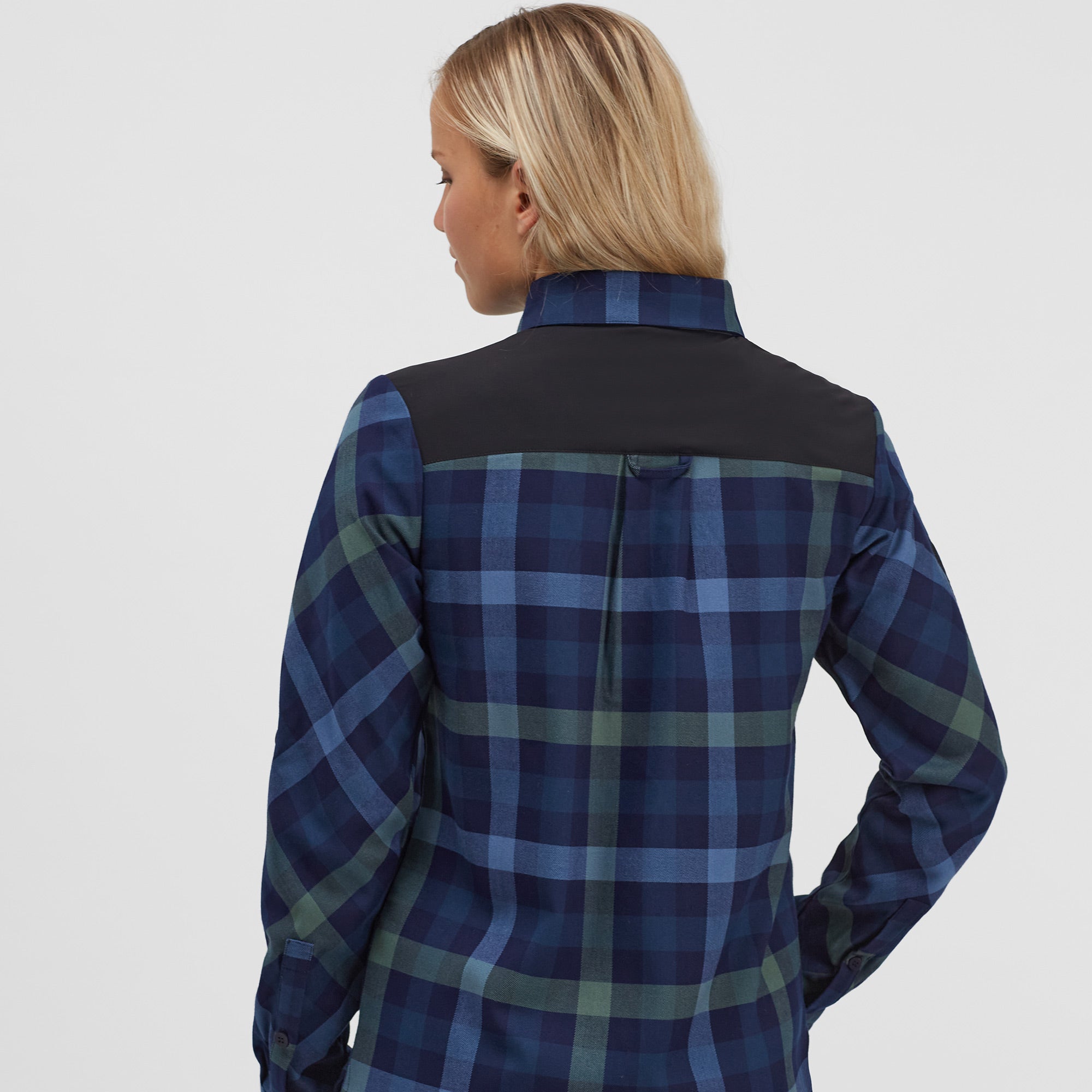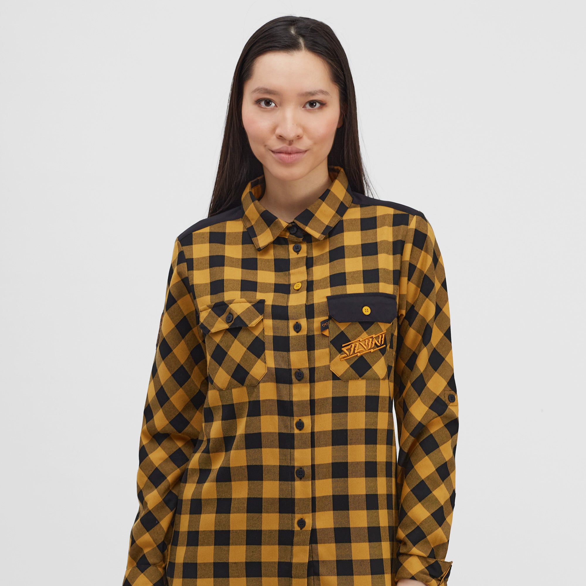 Women's breathable flannel shirt for enduro riders and leisure. It can be worn alone or as a second layer over a T-shirt. It has two chest flaps and a button to fasten the rolled up sleeves.