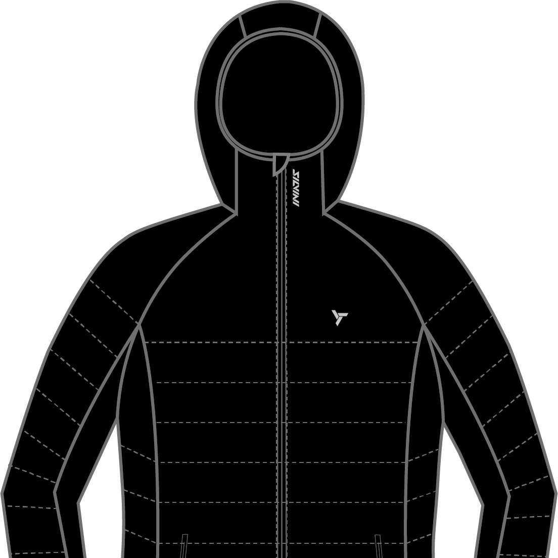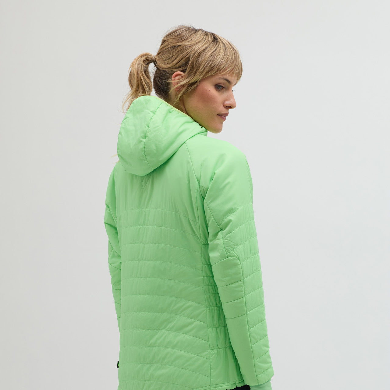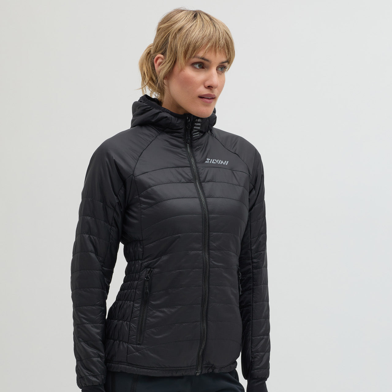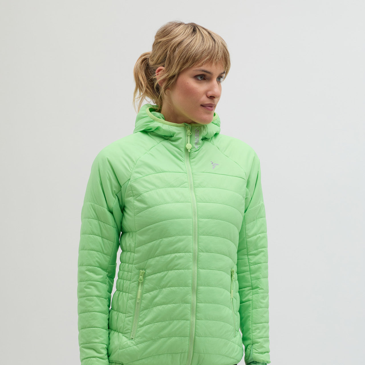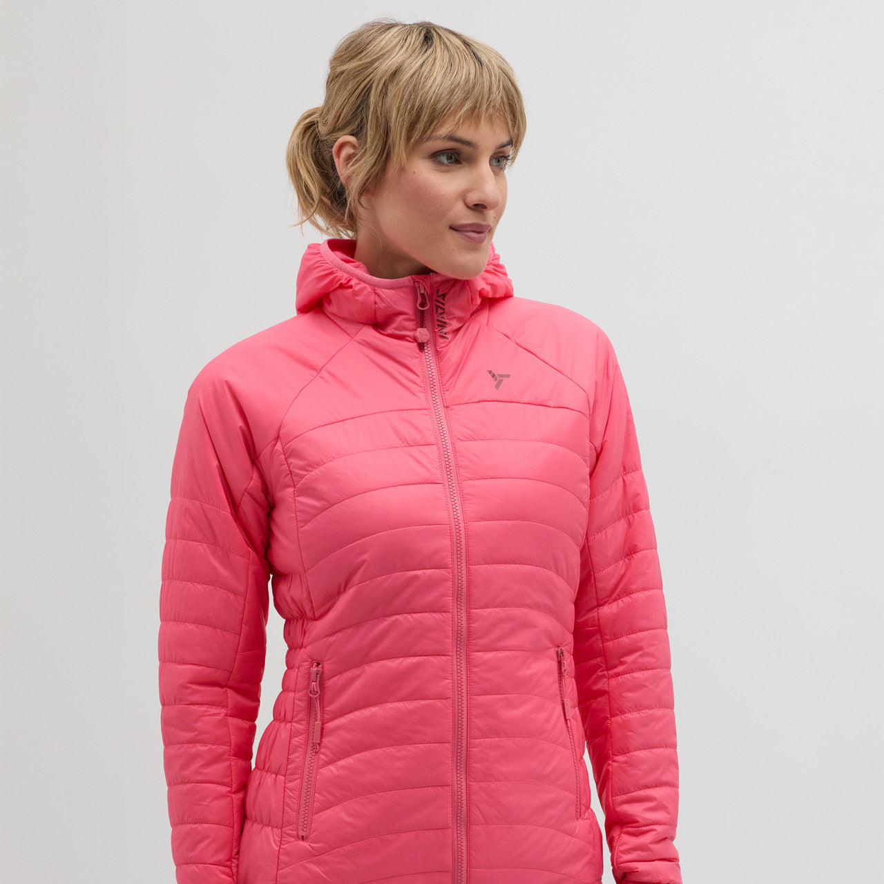 Cesi is a women’s insulated, windproof hooded jacket for outdoor activities, hiking, skiing, and casual wear, lightweight, compact, and comfortable.