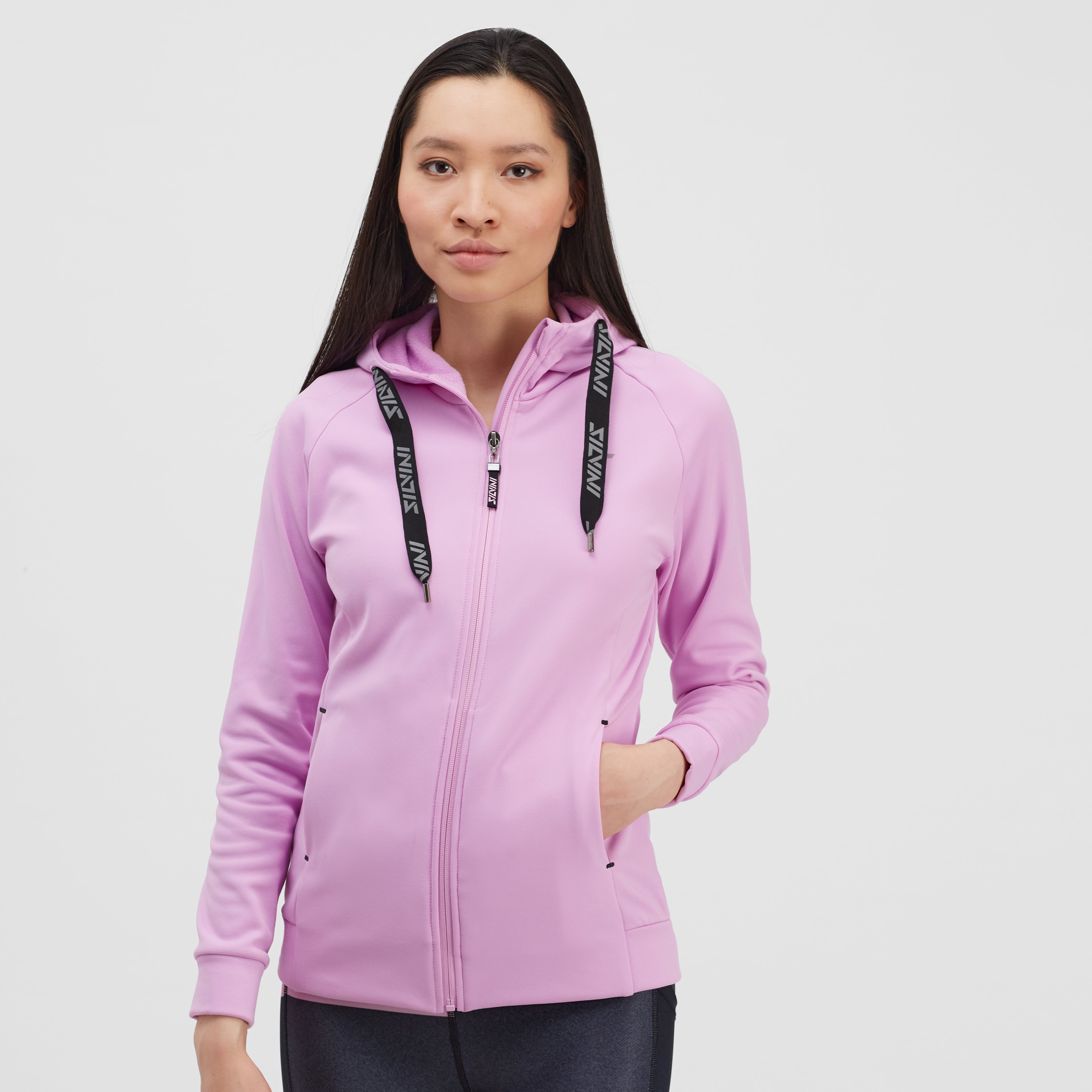 Solero women’s sweatshirt in Powertherm fabric, warm, stretchy, slightly fitted, full-length zipper, adjustable hood, two pockets, narrow cuffs for improved thermal comfort.