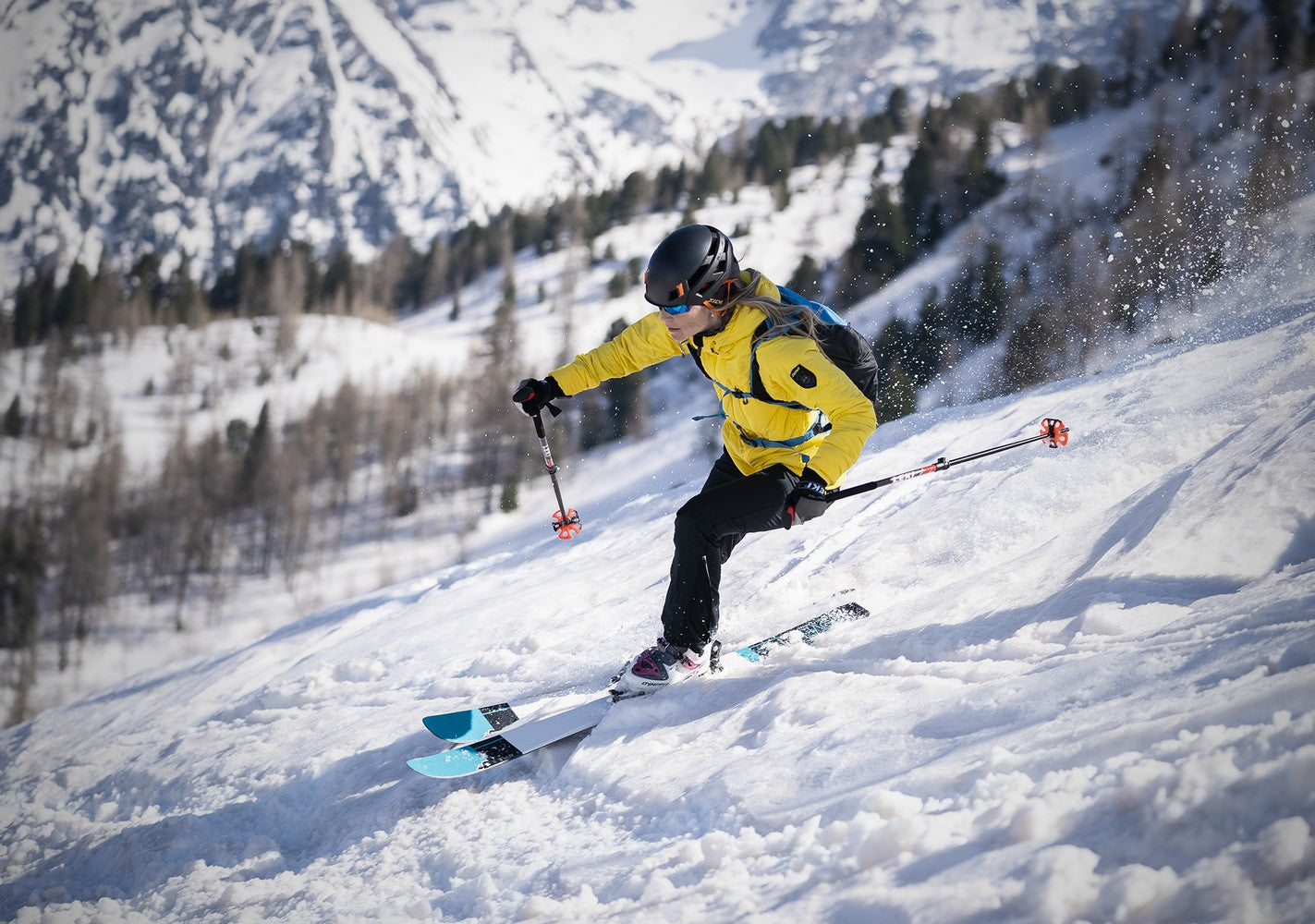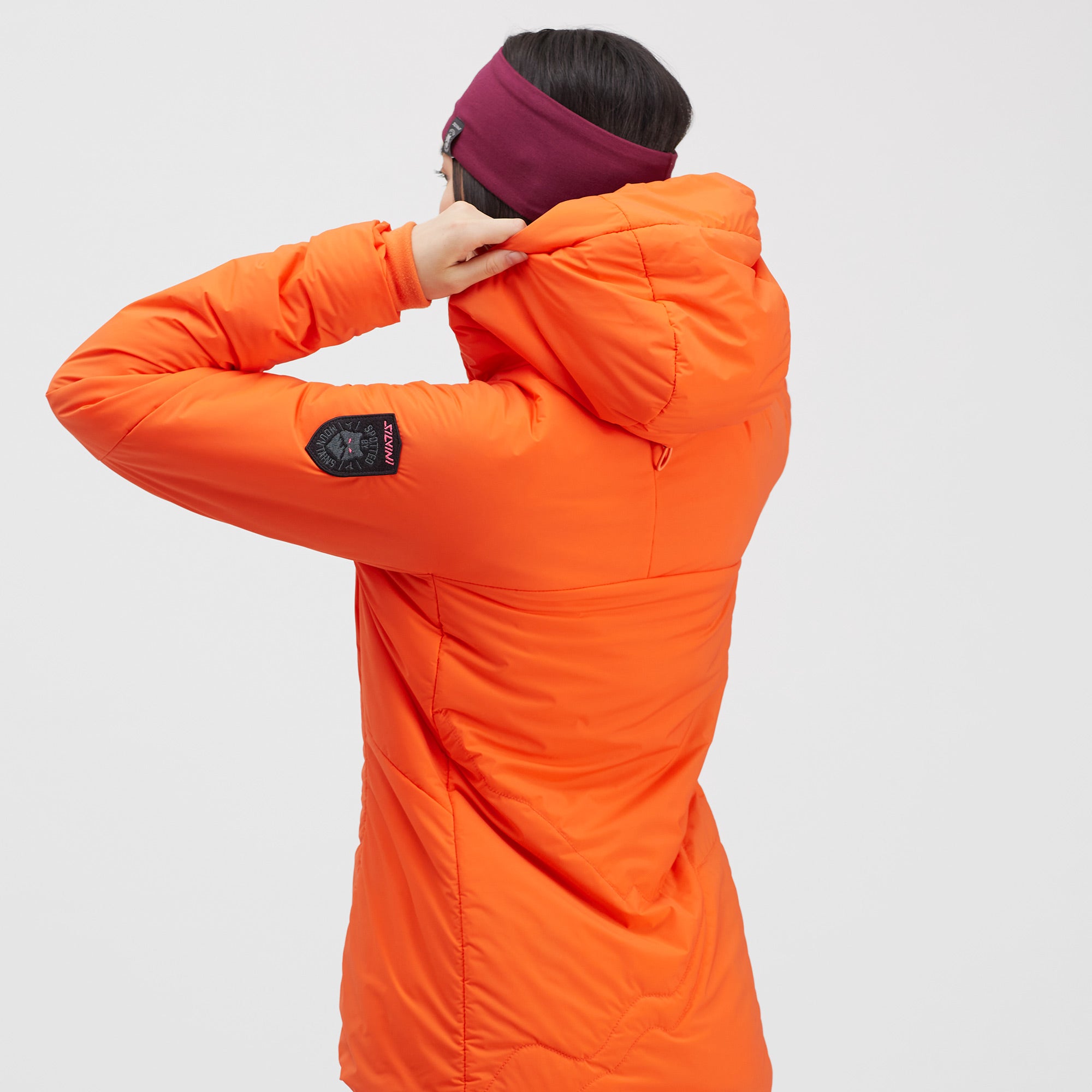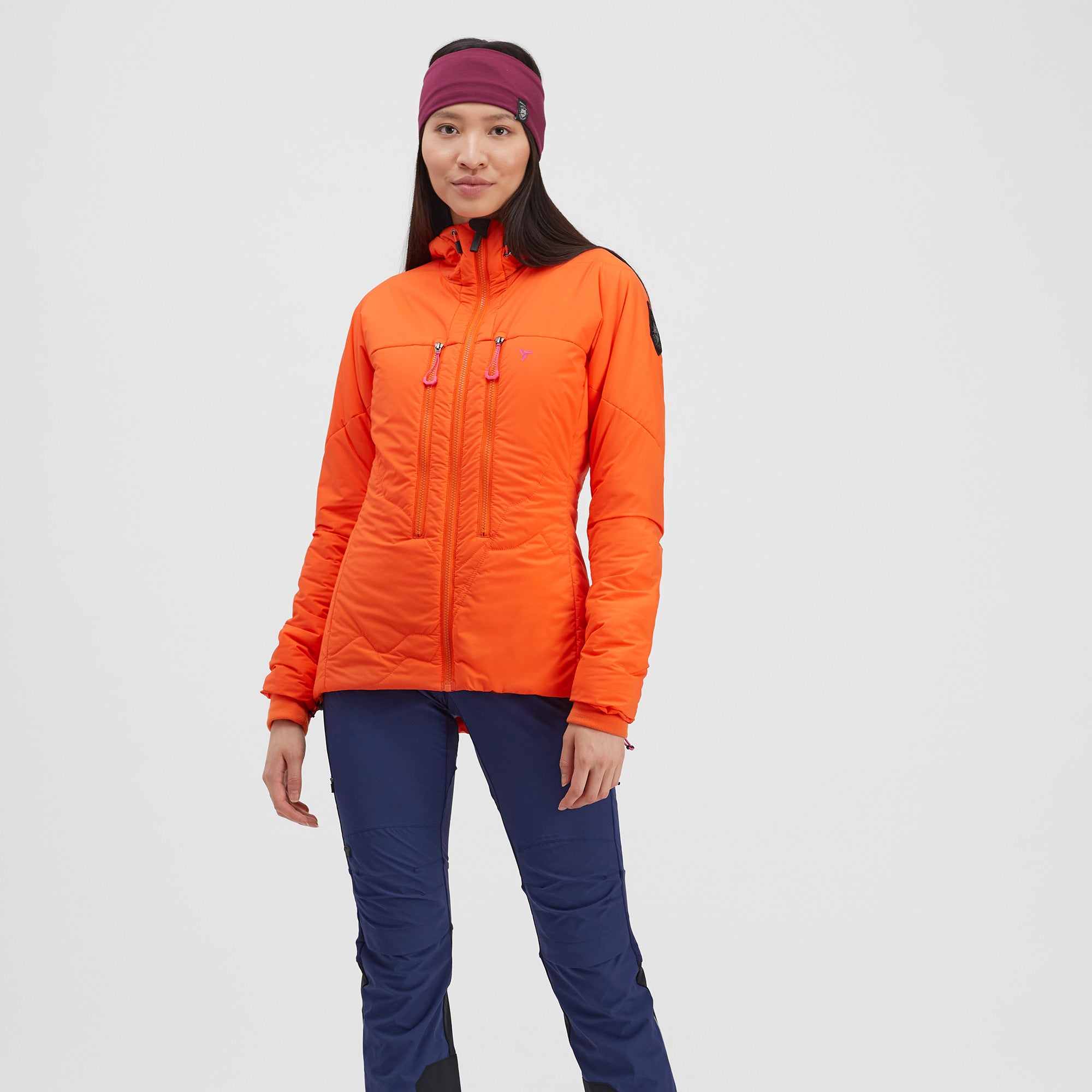 Women's insulated windproof jacket for ski mountaineers to protect against cold with Primaloft® Gold Insulation Active 80 g. The jacket is lightweight and breathable, with external and internal pockets for climbing skins.