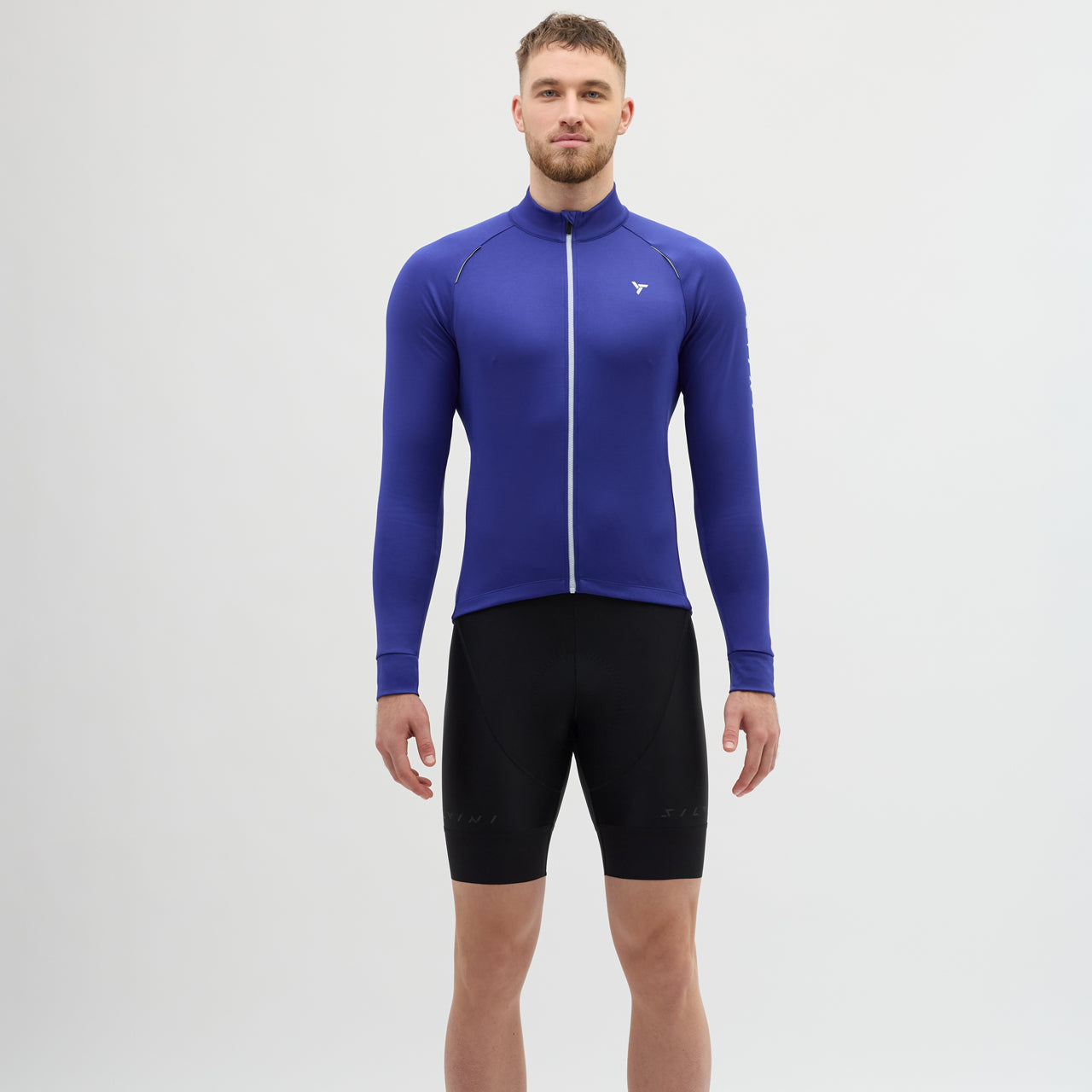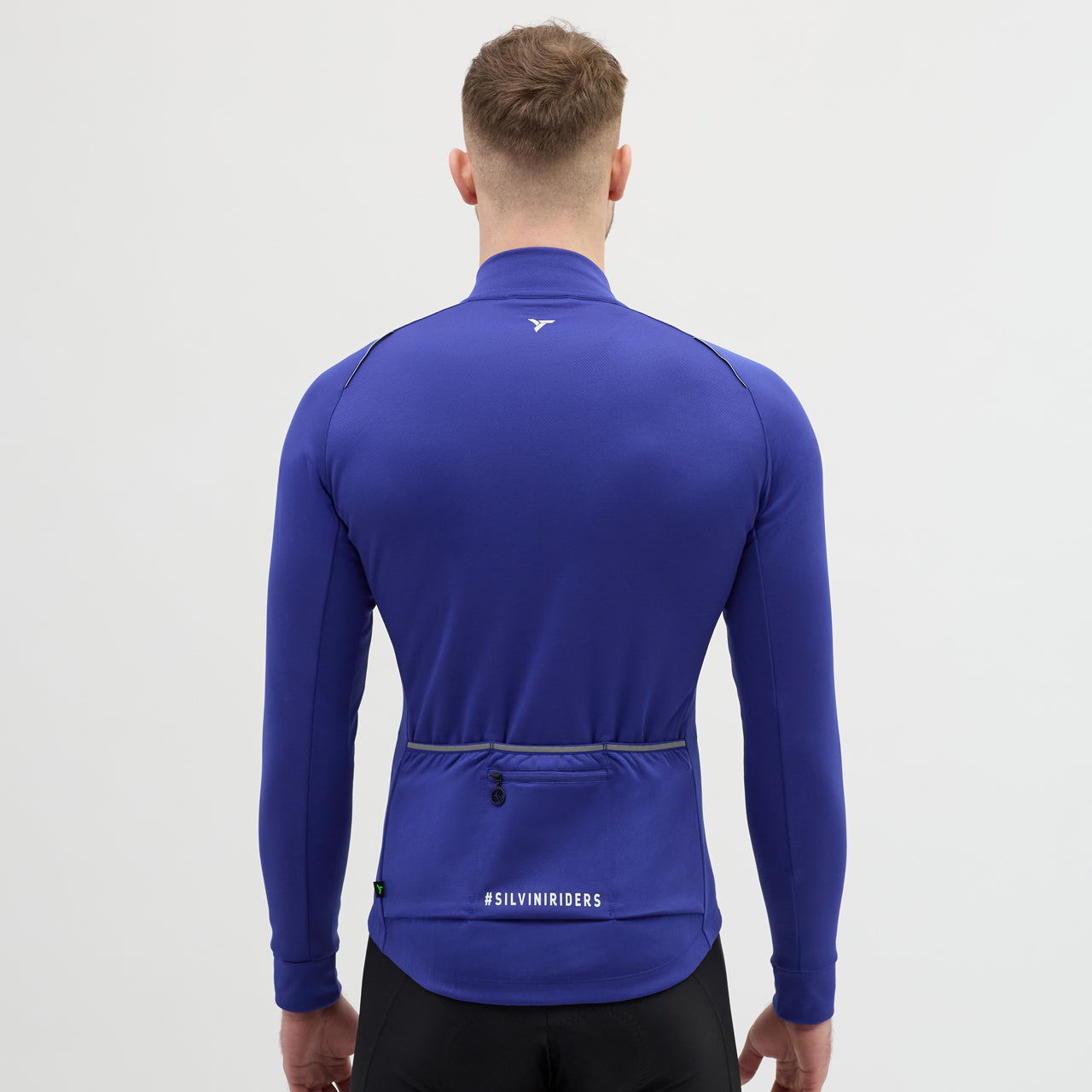 Men's insulated long-sleeved cycling jersey, made of densely woven POWERtherm material, is windproof. The raised collar effectively protects the neck. There is also a practical three-pocket at the back.